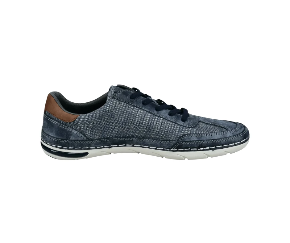A Bugatti, Green Spirit kollekció része ez a farmer hatású kék férfi cipő, a kényelem, stílus és a vintage tökéletes ötvözetével. A cipő könnyű légáteresztő vászonból és műbőrből készül, így tökéletes választás a tavaszi - nyári napokra.