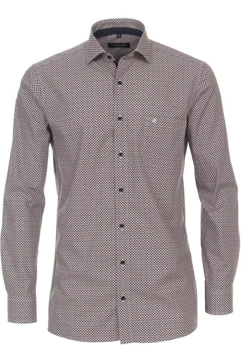 Ez a Casa Moda, mintás, hosszú ujjú férfi ing egy kifinomult és elegáns viselet, amelyet bármilyen alkalomra viselhet. 72 cm-es ujjhosszal. Az ing 100%-ban pamutból készült, így nagyon kényelmes és légáteresztő. Az ing bal elején található egy hímzett logóval ellátott zseb, ami megkönnyíti a tárolást. Sötétkék gombokkal záródik. Tökéletesen passzol farmerhez, színben vele harmonizáló chinó nadrághoz vagy akár öltönyhöz is.