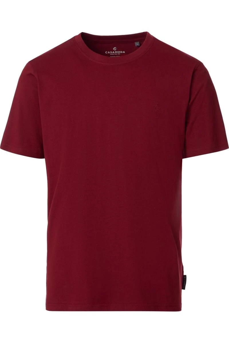 Ez a Casa Moda bordó férfi póló tiszta pamut minőségű és magas szintű viselési kényelmet biztosít. A kerek nyak kialakítás ideálisan egészíti ki a sportos megjelenést, és sokféleképpen kombinálható. Legyen szó farmerről, chinóról vagy rövidnadrágról. Minden ruhatár számára elengedhetetlen.