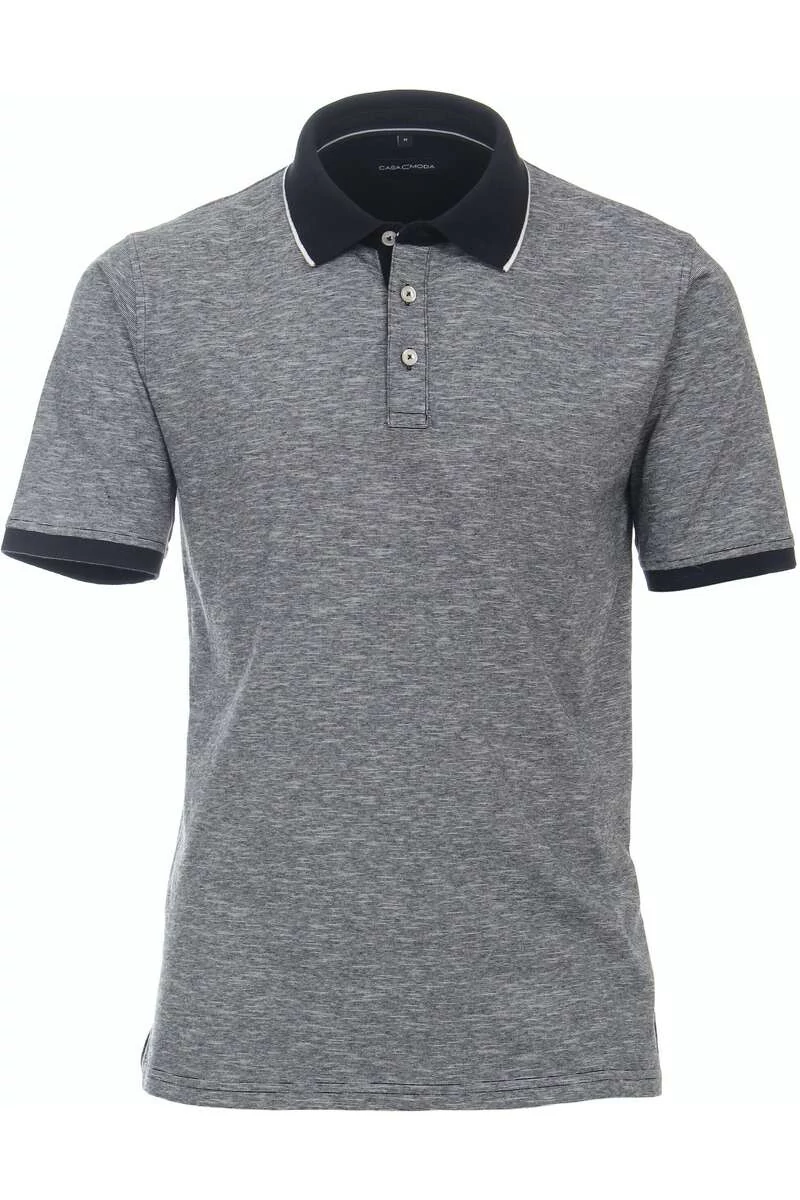 Ez a Casa Moda szürke, galléros férfi póló egy kényelmes, modern stílusú ruhadarab, melyet a hétköznapokban is viselhet. A 100% pamutból készült modell kellemes tapintású és légáteresztő tulajdonságokkal rendelkezik, így a nyári melegben is könnyedén viselheti. Jól mutat farmerrel vagy chino nadrággal is. Elől három sötétkék gombbal záródik.