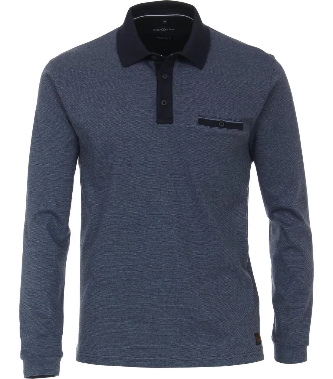 Ez a Casa Moda kék, hosszú ujjú póló, sportos kialakítású modell, divatos gallérral. Nagyon kényelmes viselet, a mindennapi életben. Akár farmerrel, chinóval vagy rövidnadrággal viselik sokféleképpen kombinálható.