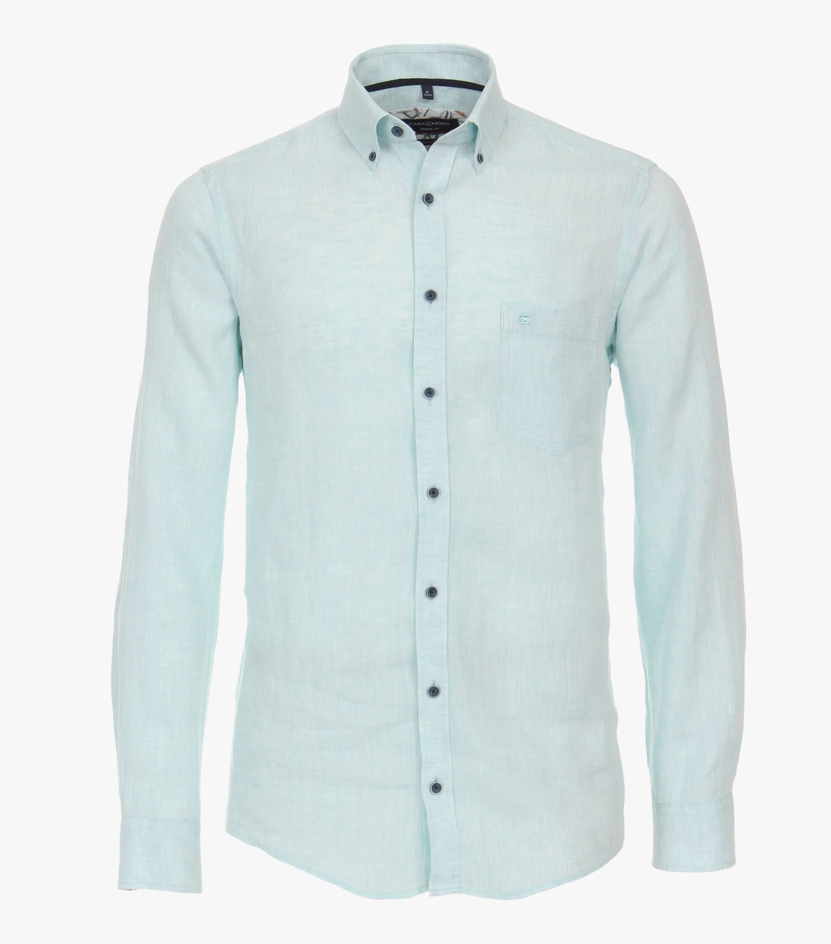Ez a világoskék színű Casa Moda ing 100%-ban lenvászonból készült, az igazán kellemes viselési élményért. Legombolt gallérjával jól mutat akár farmerrel akár chino nadrággal is. Bal elején található zsebe tárolásra is alkalmas. Igazi nyári modell.