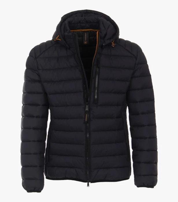 Steppelt dzseki, szélálló és vízlepergető anyagból, két belső, két külső zsebes kialakítás, levehető kapucnival