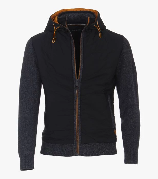 Elől divatos steppeléssel, kötött háttal a még nagyobb kényelemért. Levehető kapucnival, két oldalsó zsebbel