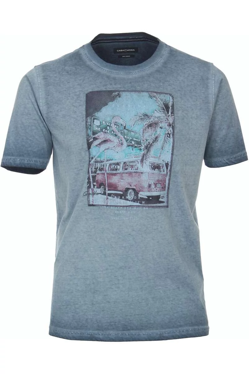 A Casa Moda kék, férfi, kerek nyakú póló egy modern, stílusos és kényelmes viselet. A 100%-ban pamutból készült anyagból varrt ruhadarab a hétköznapokon is jó szolgálatot tesz. A színvilága a nyugodt, elegáns árnyalatokra épül, ami minden alkalomhoz illik. Farmerhez is remekül passzol. A pamutanyag biztosítja a kellő légáteresztő képességet, így az egésznapos viselhetőséget garantálva.