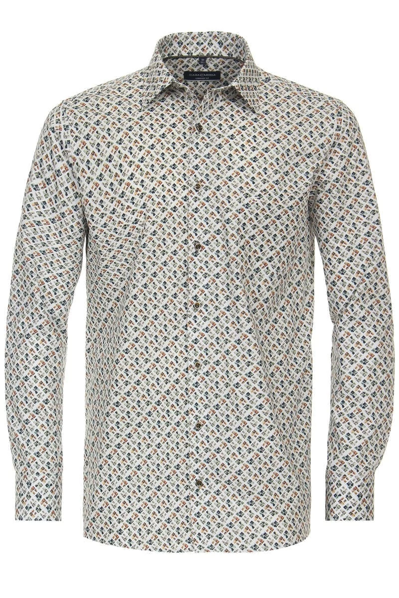 Ez a Casa Moda mintás hosszú ujjú férfi ing egy kifinomult és elegáns viselet, amelyet bármilyen alkalomra viselhet. Az ing 100%-ban pamutból készült, így nagyon kényelmes és légáteresztő. A modern szabásának köszönhetően mindig jól mutat, míg a sokféle minta segítségével igazán egyedivé varázsolja az öltözetet. Az ing bal elején található egy hímzett logóval ellátott zseb , ami megkönnyíti a tárolást. Tökéletesen passzol farmerrel vagy színben vele harmonizáló chinó nadrággal.