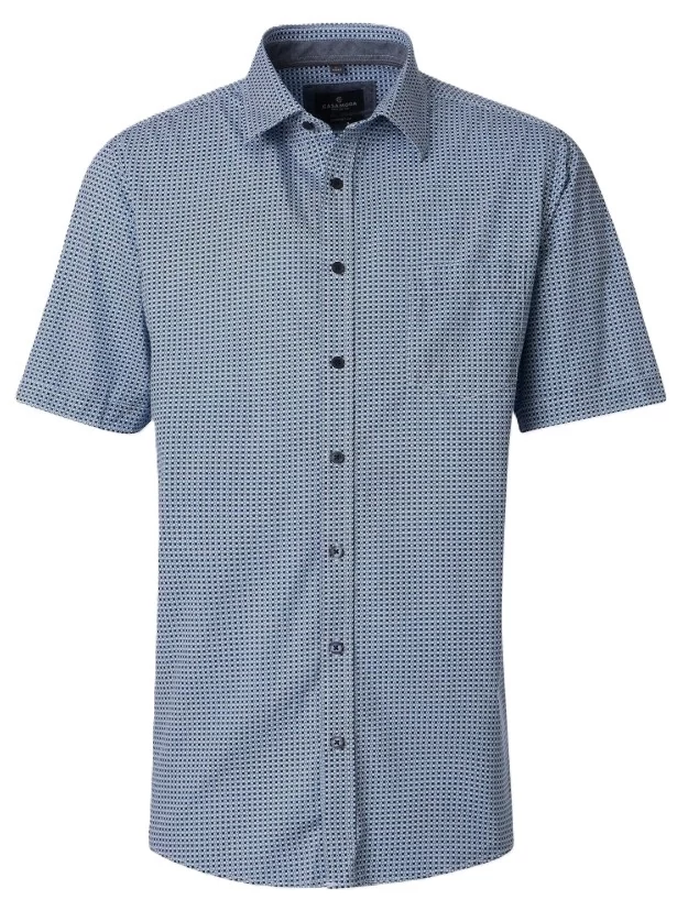A Casa Moda mintás rövid ujjú férfi ing egy kifinomult, modern stílusú ruhadarab, amelyet a legmagasabb minőségű anyagokból készítettek. Az ing 100%-ban pamutból készült, így biztosítva a hosszantartó kényelmet és szellősséget. Mintázata divatos modern megjelenést biztosít. Ez a Casa Moda rövid ujjú férfi ing tökéletes viselet mindennapi használatra farmerrel is vagy akár chino nadrággal kombinálva.
