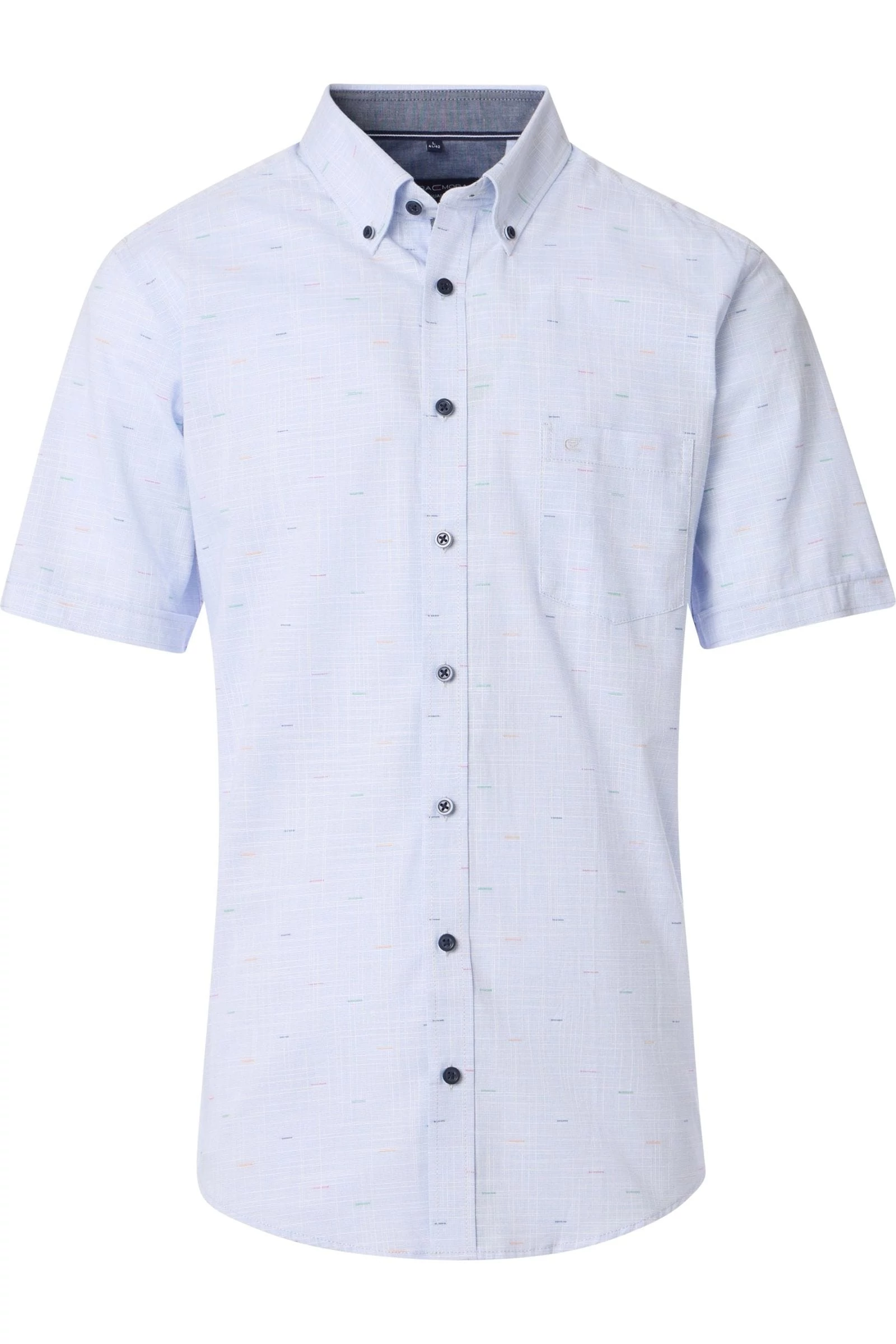 A Casa Moda mintás rövid ujjú férfi ing egy kifinomult, modern stílusú ruhadarab, amelyet a legmagasabb minőségű anyagokból készítettek. Az ing 100%-ban pamutból készült, így biztosítva a hosszantartó kényelmet és szellősséget. Sárga, zöld, piros és kék vonalak díszítik az ing egészét, amely divatos és modern megjelenést biztosít. Ez a Casa Moda rövid ujjú férfi ing tökéletes viselet mindennapi használatra farmerrel is vagy akár chino nadrággal kombinálva.