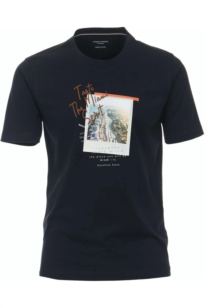 A Casa Moda sötétkék kereknyakú férfi póló egy kényelmes és stílusos viselet, amelyet 100% pamutból készítettek. A póló klasszikus, kereknyakú designja tökéletesen illeszkedik a mindennapokhoz, miközben a sötétkék szín kifinomultságot és eleganciát kölcsönöz. A póló puha és légáteresztő anyaga biztosítja a kényelmet, miközben a precízen kivitelezett varrások javítják a tartósságát. Vásárolja meg most ezt a Casa Moda pólót, hogy stílusos és kényelmes legyen bármikor, bármilyen alkalommal!