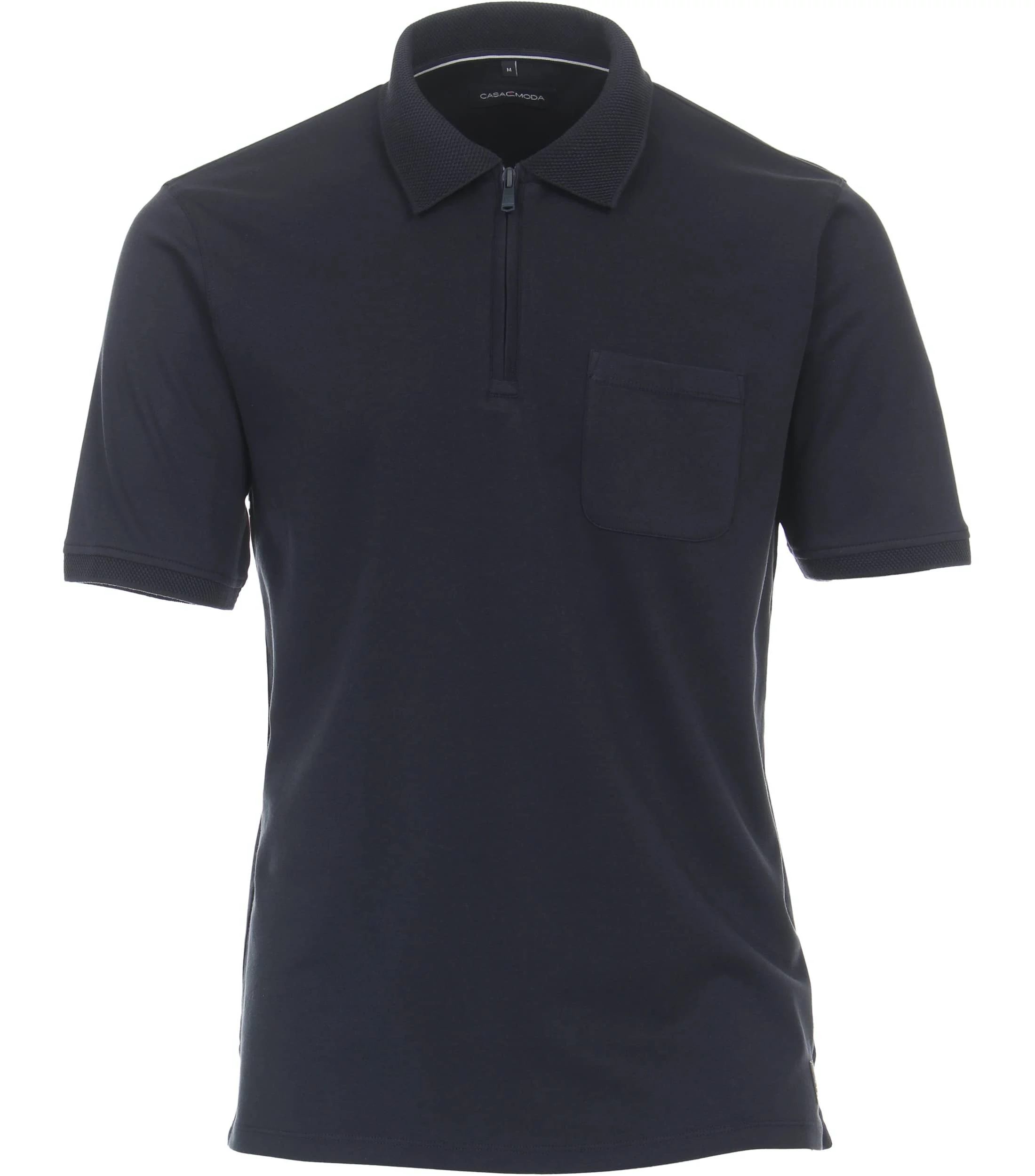 Ez a Casa Moda sötétkék, galléros férfi póló egy kényelmes, modern stílusú ruhadarab, melyet a hétköznapokban is viselhet. A 100% pamutból készült modell kellemes tapintású és légáteresztő tulajdonságokkal rendelkezik, így a nyári melegben is könnyedén viselheti. Jól mutat farmerrel vagy chino nadrággal is. Bal elején zseb található. Elől cipzárral záródik.