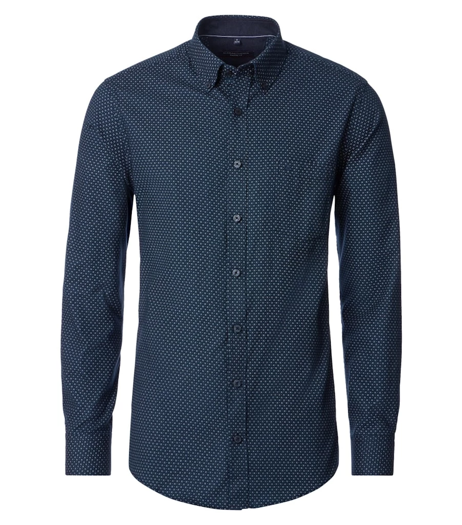 Fedezd fel a stílus és a kényelem tökéletes kombinációját ezzel a Casa Moda hosszú ujjú pamut inggel. A sötétkék minta modern és casual megjelenést kölcsönöz, amely ideális választás a hétköznapi viselethez, de elegánsabb alkalmakra is megfelelő. Legombolt nyakú fazon, ami jól passzol mindenhez. Az ing kiváló minőségű pamutból készült, így biztosítva a kellemes viseletet és a légáteresztő képességet egész nap. A Casual Fit szabásnak köszönhetően az ing lezserül illeszkedik a testhez, kiemelve a férfias vonalakat. Válaszd ezt a Casa Moda inget, ha szeretnél divatosan és kényelmesen megjelenni bármilyen helyzetben!