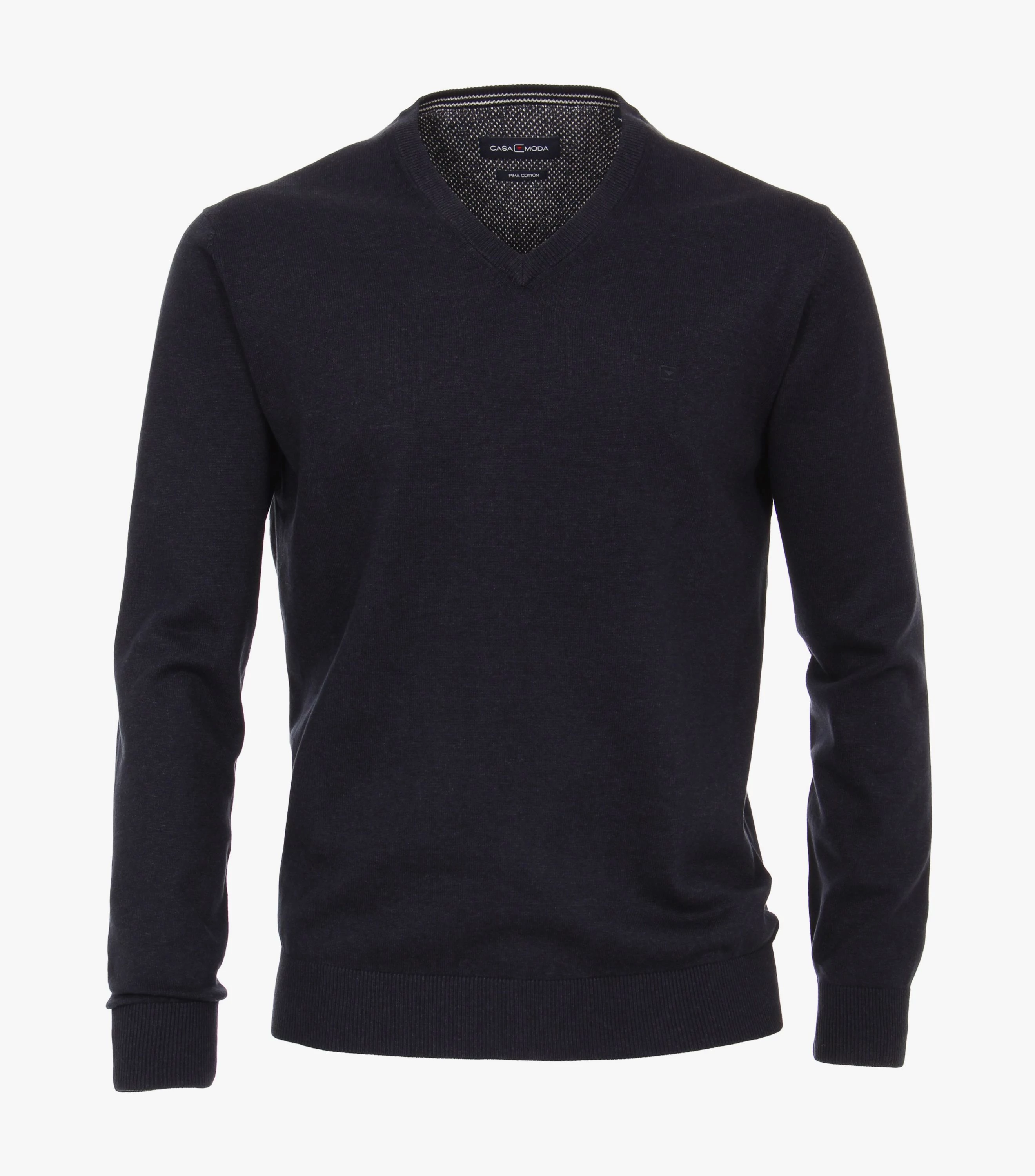 Ez a Casa Moda V nyakú pulóver tiszta Pima pamutból készült, melyet a világ legfinomabb pamutjának tartanak. Nagyon kényelmes viseletet tesz lehetővé. Ez egy időtlen klasszikus, amely tökéletes kiegészítőnek bizonyul minden alkalomhoz. Viseld pólóval és farmerrel, vagy párosítsd chinóval és inggel. Ez a pulóver abszolút alap darab, melynek egyetlen szekrényből sem szabad hiányoznia.