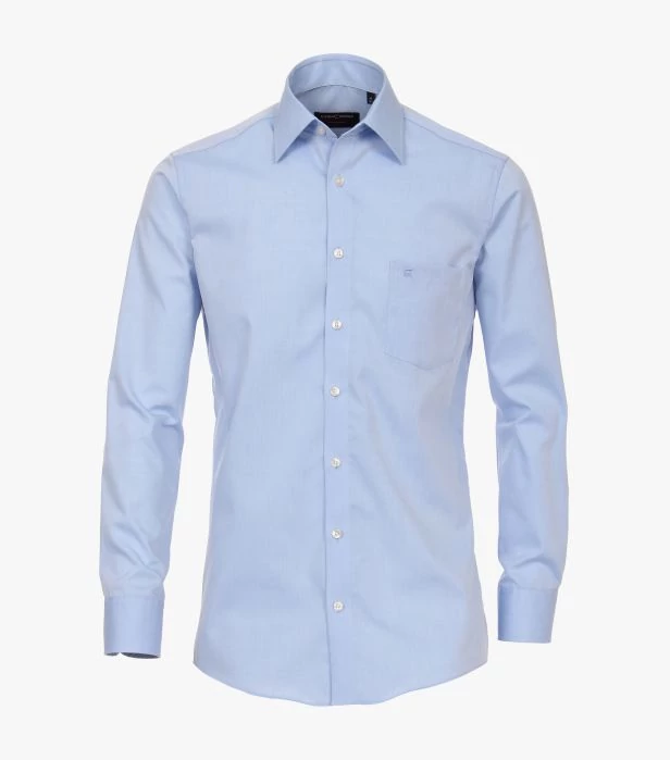 Ez a Casa Moda világoskék, hosszú ujjú férfi ing egy kifinomult és elegáns viselet, amelyet bármilyen alkalomra viselhet. 72 cm-es ujjhosszal. Az ing 100%-ban pamutból készült, így nagyon kényelmes és légáteresztő. Az ing bal elején található egy hímzett logóval ellátott zseb, ami megkönnyíti a tárolást. Tökéletesen passzol farmerhez, színben vele harmonizáló chinó nadrághoz vagy akár öltönyhöz is.