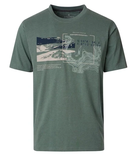 Ez a Casa Moda zöld, mintás, kerek nyakú, férfi póló egy kényelmes, modern stílusú ruhadarab, melyet a hétköznapokban is viselhet. A 60% pamutból, 40% poliészterből készült modell, kellemes tapintású és légáteresztő tulajdonságokkal rendelkezik, így a nyári melegben is könnyedén viselheti. Jól mutat farmerrel és rövidnadrággal is.