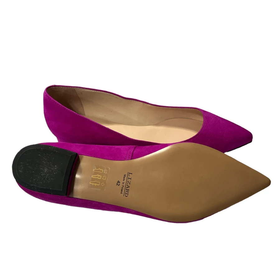 A Lizard fukszia, elegáns női balerina cipő tökéletes választás minden olyan nő számára, aki szeretne stílusos és kényelmes cipőben tündökölni. A cipő modern és különleges színnel rendelkezik, mely igazán magával ragadóvá teszi megjelenését. A cipő prémium minőségű velúr bőrből készült, így hosszú távon is kényelmes viseletet biztosít. Ebben a modellben élvezheted az elegancia és kényelem tökéletes kombinációját. Legyen ez a Lizard cipő az új kedvenc darabod a gardróbban!